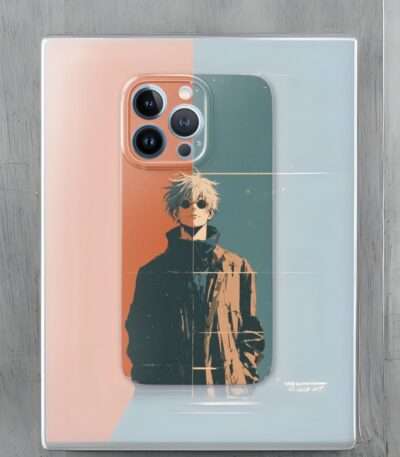 🔹 Gojo Satoru iPhone Case (Teal-Orange Edition) 🧿🕶️🔥